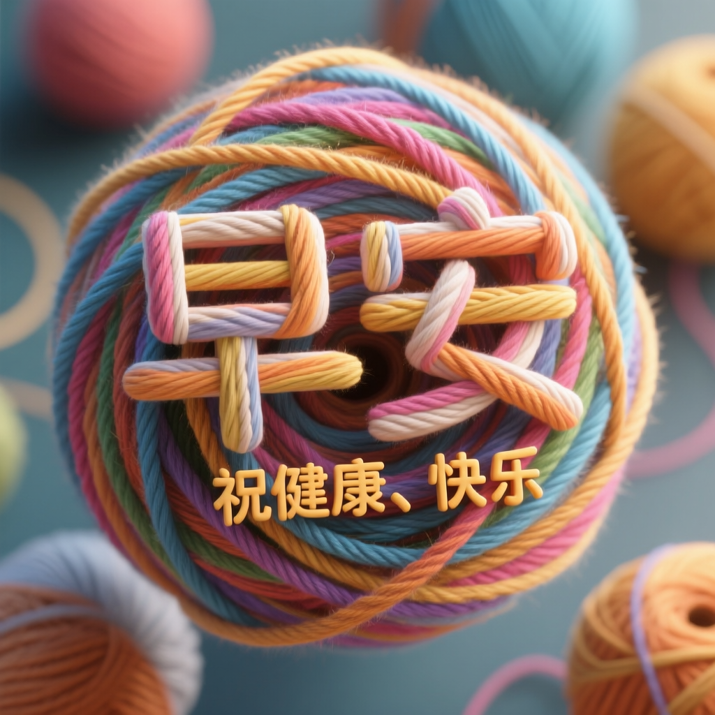 画面风格:智能匹配描述词:彩色的多条细毛线旋转像穿毛线球一样重叠绕缠而成的构架立体字,中文字“早安”,小字“祝健康、快乐”,文字是数条毛线绕缠构成的Maya渲染的立体字,C4D渲染,从俯视角度观看,背景虚化。